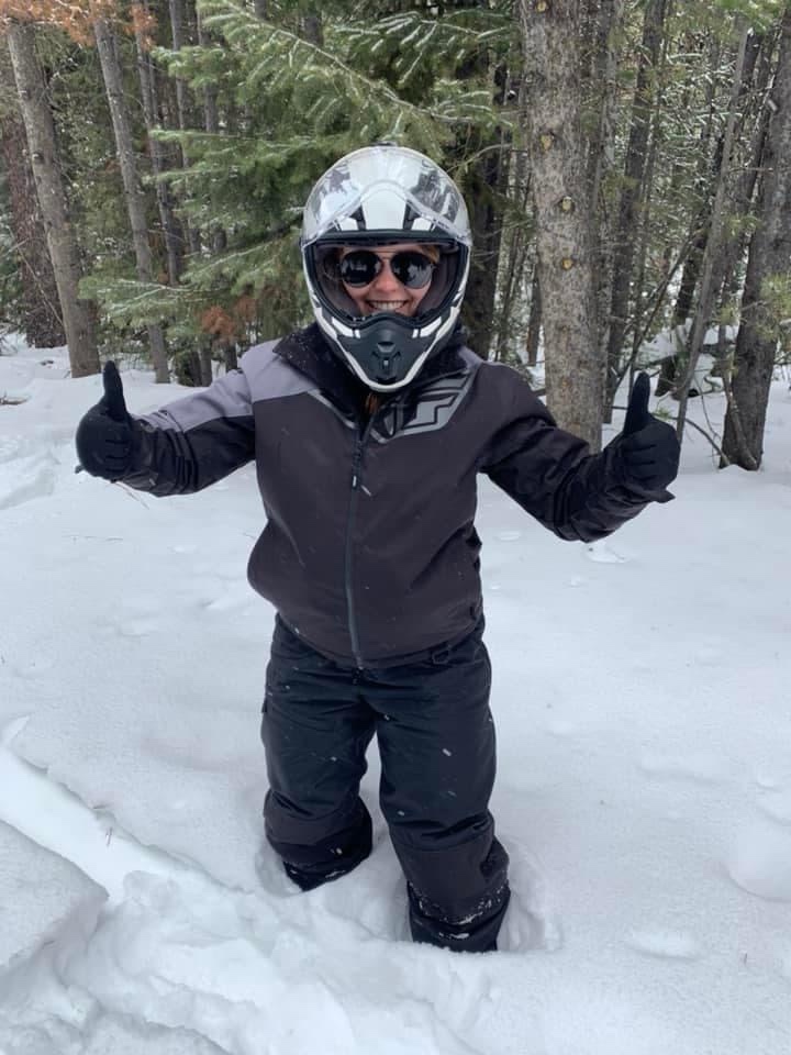50 mile snowmobile tour ride in the Bridger – Teton National Forest through the Continental Divide. Again, the shuttle came to pick us up at our hotel and brought us to our destination where they supplied all of our snowmobile gear. We were able to pick out our snowmobile and away we went. There were several other snowmobiles with us along with our tour guide. We stopped halfway through to eat at the Grizzly Grill where they provided us lunch. It was a foggy day making it hard to see much wildlife but it was still a magical adventure!