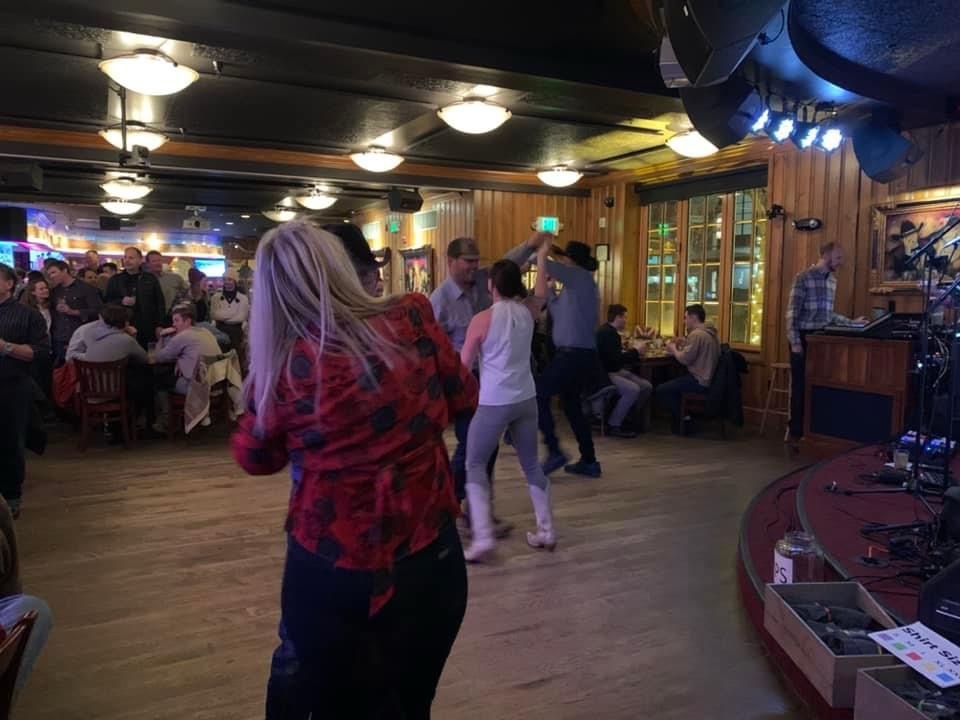 Enjoy west coast and swing dancing with a live bluegrass band in the town square. Good drinks! I highly recommend getting in there early to find a table!